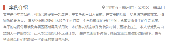 3、案例簡介需包含:項目名稱、地址、家裝家具一體價 (價格標準:阿拉伯數(shù)字加萬元) 、案例簡介。例如下: