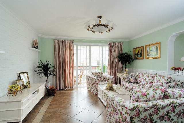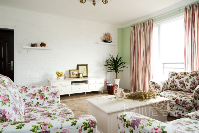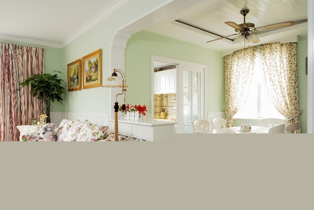 綠色墻面和碎花布紋家具,烘托出空間的品位和溫馨的氛圍。