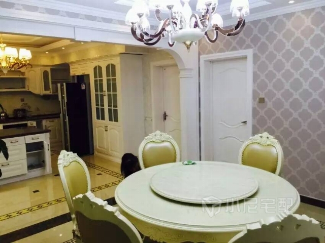 此款歐式的斑駁紋理滿鋪了整個餐廳,餐桌上隨意擺放著的茶具與周圍的盆景相呼應,使得空間莊重與典雅。盡顯優雅閑逸。