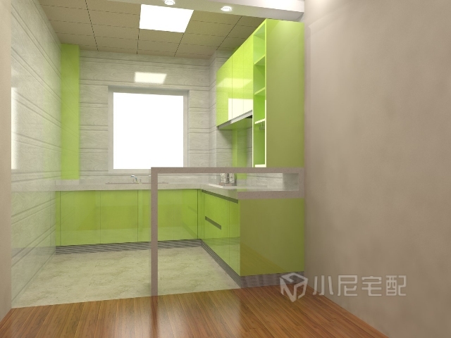 廚房設計方案一,果綠色,體現活躍的個性