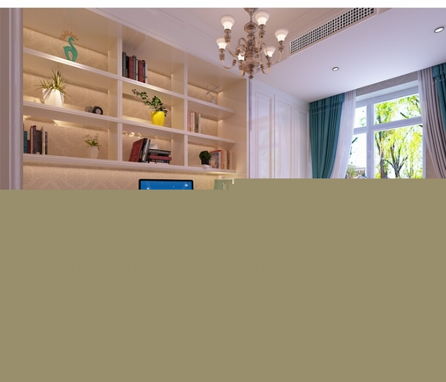 客廳藍色窗簾和水晶燈的搭配讓整體色調(diào)清爽一些。