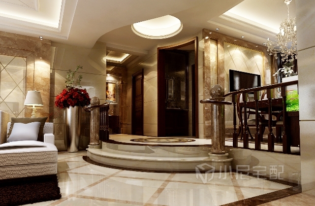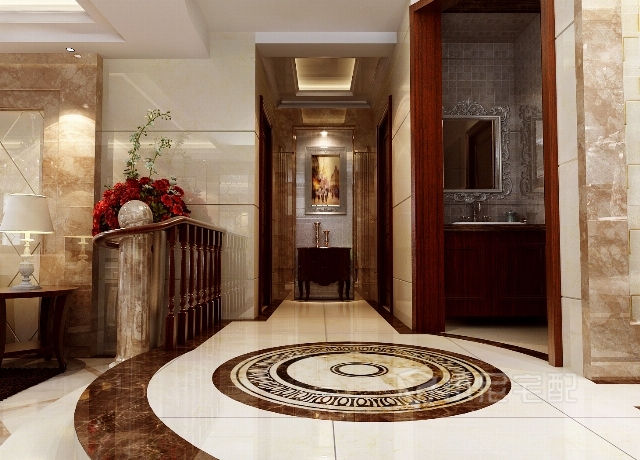 玄關的自高點一圓形的拼花突出中心的奢華。