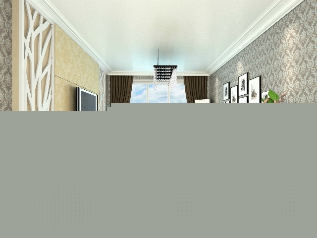 落地窗加淺色的壁紙讓客廳的空間顯得更加寬闊。