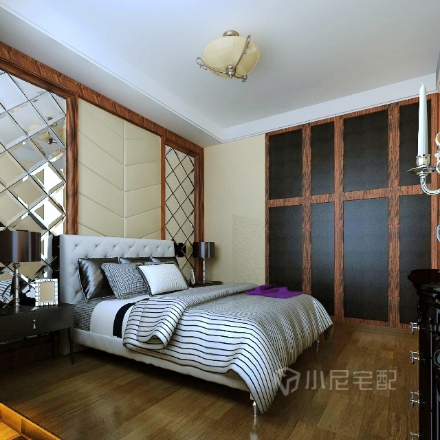 臥室背景墻簡潔大氣 軟包和玻璃的更好結合。