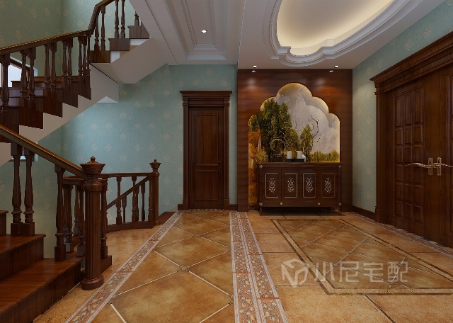 在入戶門采用浮雕背景墻給一大氣的感覺