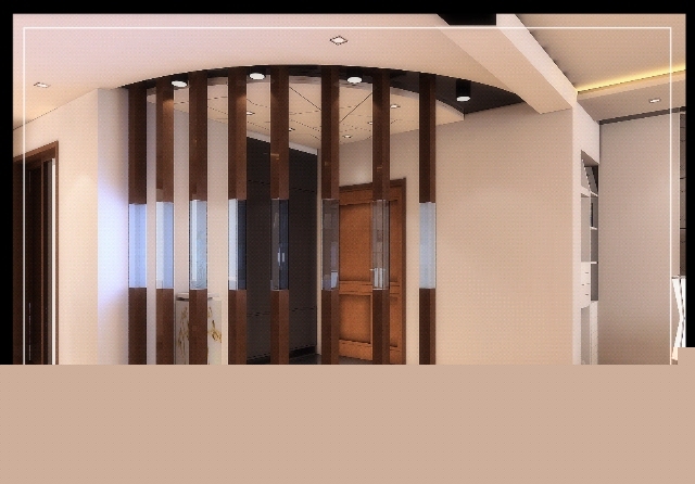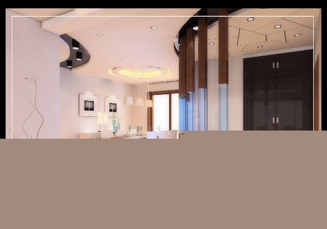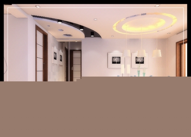 餐廳 走廊吊頂都用曲線來裝飾,臺階和吊頂形成照應
