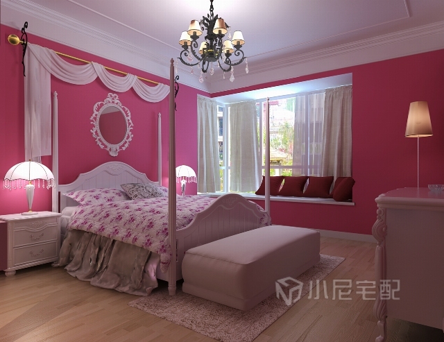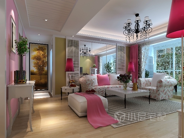 這套裝修以粉色調為主,搭配白色的簡歐家具,房間的細小裝飾起點綴作用,使整個空間不失單調,溫馨浪漫,非常適合年輕上班族居住,工作一天回到家被這舒適的氛圍籠罩,整個人倍感輕松。