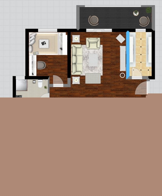 陽臺設計與客廳相互照應,綠色盆栽增添生機。