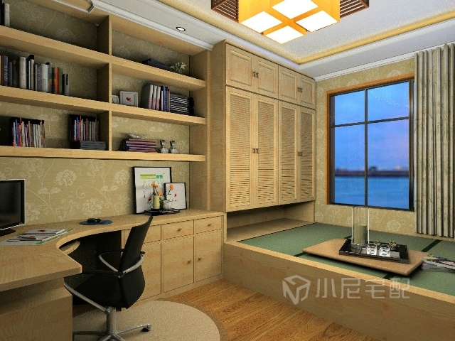 超大的書柜在滿足擺放書籍的同時(shí),還能擺放各種紀(jì)念品。可以在閱讀疲倦的時(shí)候,欣賞一下自己的收藏。