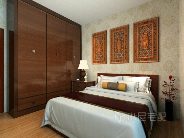 臥室在色彩方面秉承了傳統古典風格的典雅和華貴。