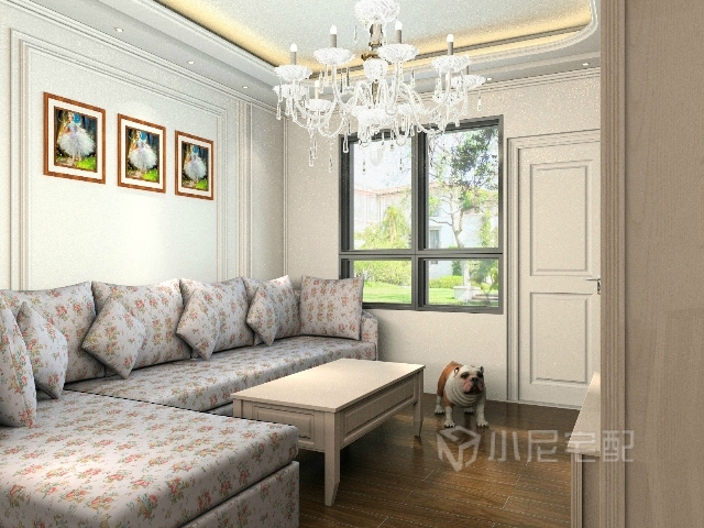 純凈優(yōu)雅的花紋沙發(fā),使人輕松自在,屋頂的燈盞是非常有特色的,和諧而又富有創(chuàng)意。