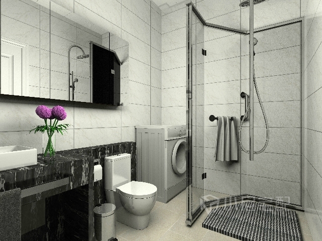 黑白的搭配,以及金屬的質感,使得衛生間顯得潔凈,時尚,大氣