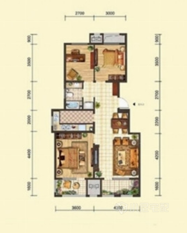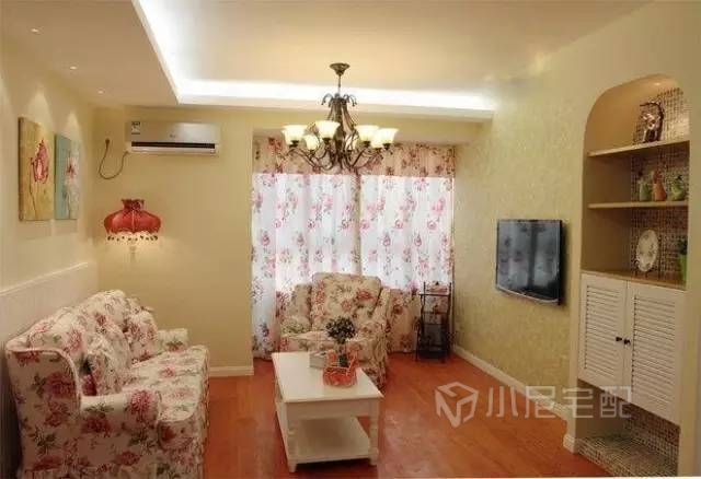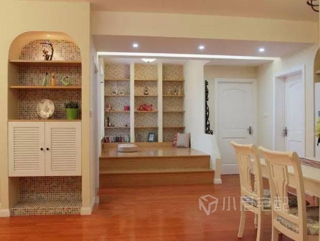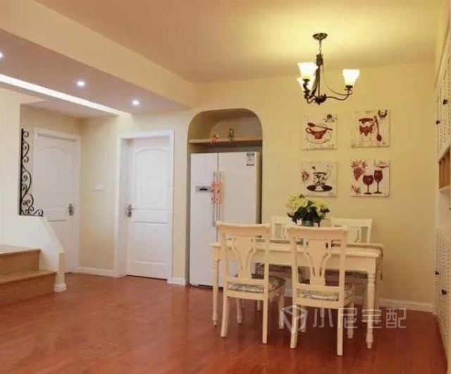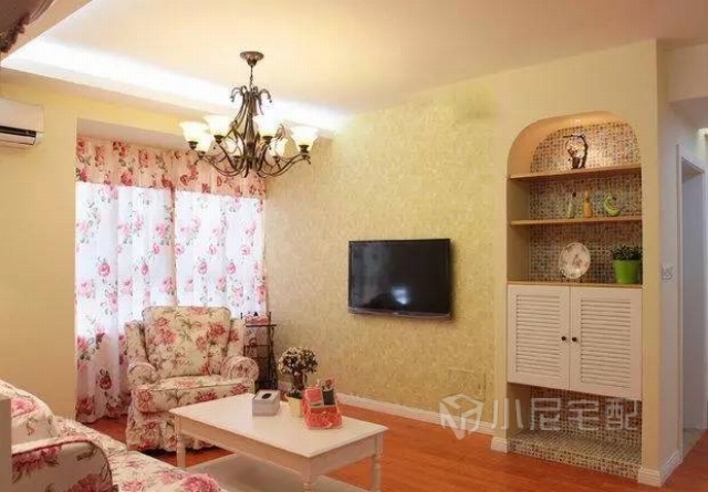 本案打造田園風格主題就是以貼近自然,展現樸實生活的氣息,墻面以明媚的黃色為主色調,背景墻處局部采用小尼魔畫點綴,搭配家具的洗白處理,創造處自然、簡樸、高雅的氛圍。家裝家具一體價:13萬。