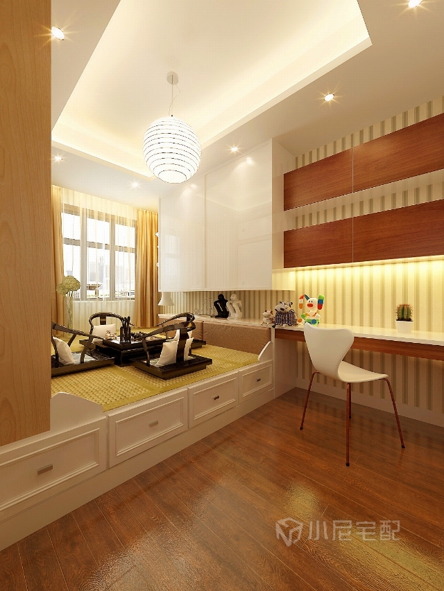 僅僅是一副掛畫就足以襯托出臥室恬靜的氛圍,陽(yáng)臺(tái)的榻榻米可以讓忙碌了一天的心情得到平靜。