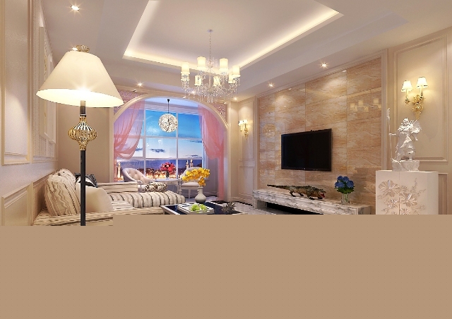 豎紋的背景和沙發(fā)顯得是如此的愜意。帶有雕花的埡口配上粉色紗簾也極為浪漫。