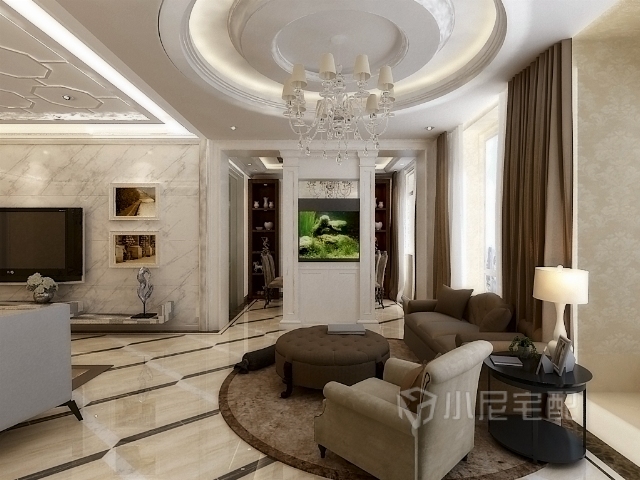 本案設計風格為簡歐風格,在注重裝飾效果的同時,用簡歐的表現手法和材質還原風格特點