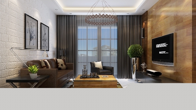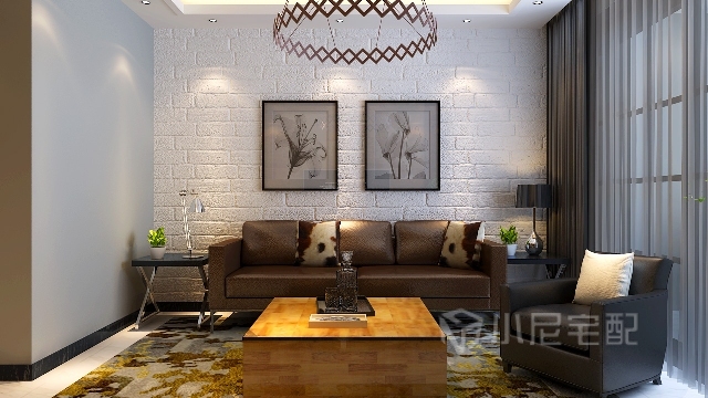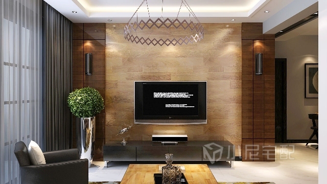 客廳的沙發與茶幾與背景墻遙相呼應,渾然一體。