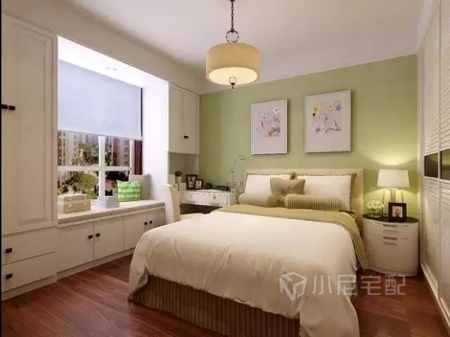 次臥干凈大氣,光線很好,在飄窗上做了一個小型榻榻米。開設了一個休息閱讀區。