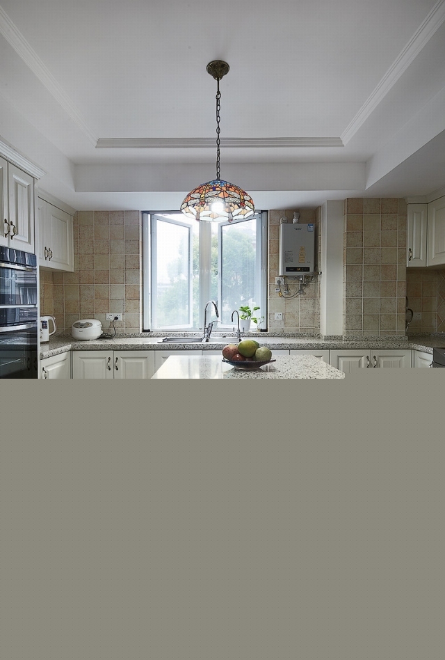 開放式的廚房,中間還有一個小倒臺,足夠一家人一起做飯了,氣氛一定很不錯吧。