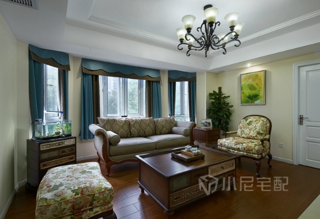 客廳的采光非常好,小碎花的沙發增加了些許的田園風。