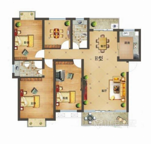客戶特別喜歡花草,家里到處可見,主臥有種唯美小清新的感覺,屬于小女人的幸福。家裝家具一體價:24萬。