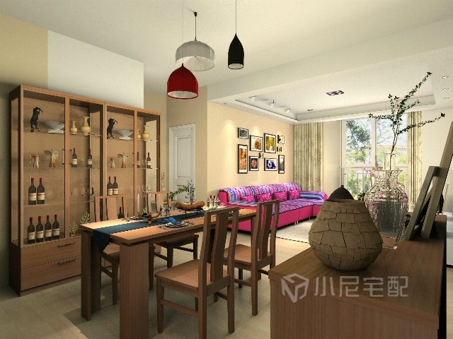 餐桌后面的酒柜既可以當(dāng)展示柜又可以放一些常用的水杯類的。