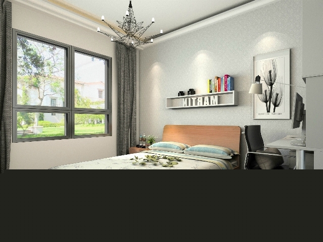 主臥的基調(diào)是樸實,不管是吊頂,還是原木色的大床,都帶著簡明的顏色和線條。