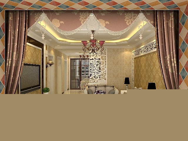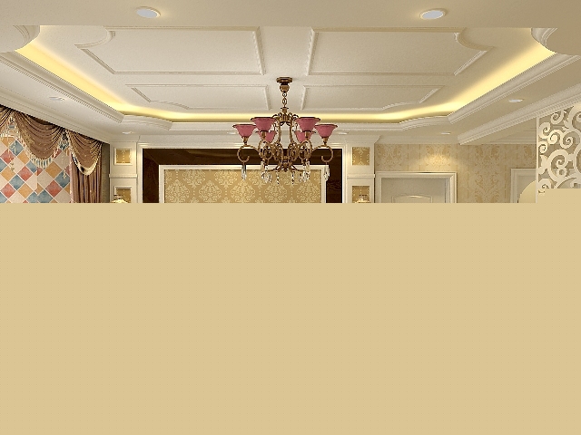 大氣的吊頂,精致多層電視墻充滿奢華,暖黃色沙發(fā)和壁紙不失溫馨。
