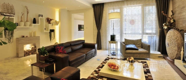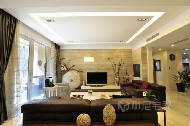 客廳在各個角落電視背景墻旁都放了綠植和假花,讓整個空間看起來大氣而又不單調。