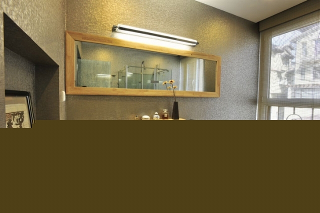客廳以棕灰色為主色調,設計師對光線的處理恰到好處。