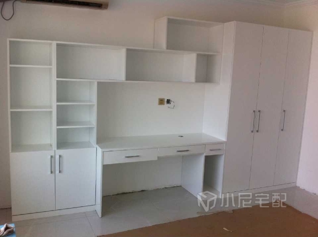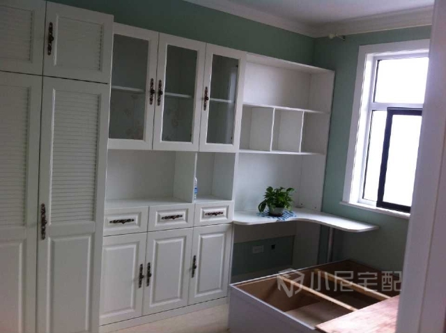 書房里書柜+衣柜的連體功能,既可以做公共書房,又能做客房。