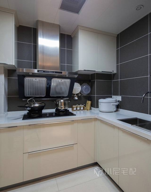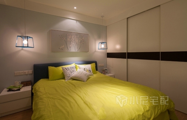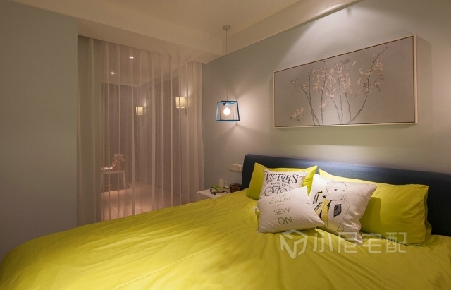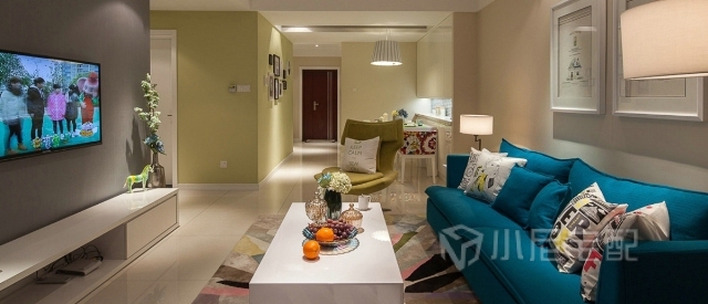 本案設計的主色調以白灰為主,局部用顏色區分空間,然后再用鮮艷的軟裝配飾來豐富空間,使整個客廳既現代時尚又不失生活氣息,體現主人內斂沉穩的性格和追求生活品味的格調。家裝家具一體價:14.5萬。