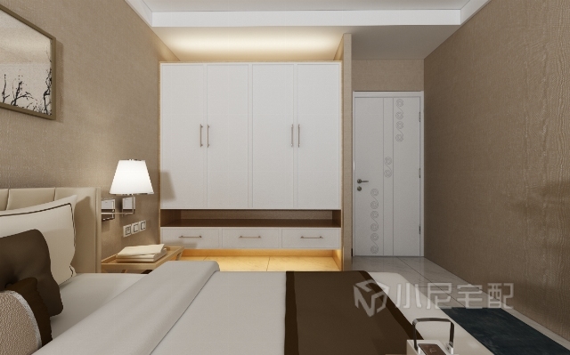 主臥設色清爽,收納功能齊全,運用簡潔線條鋪陳立面;