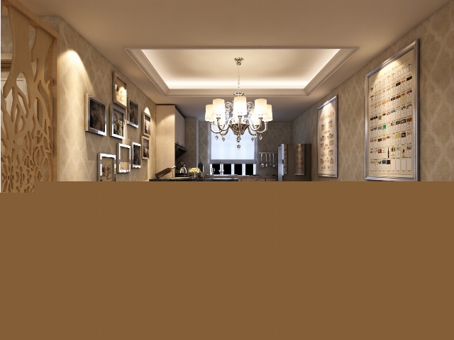 運用照片墻、水晶燈飾、石材的裝備,框塑出餐敘區域低沉而奢華的空間意象。