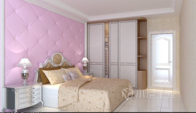 床頭背景采用了粉色的軟包,整個房間既溫馨又浪漫!