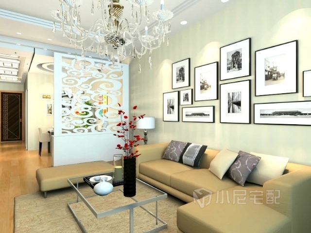 暖黃色的沙發讓人記得很溫馨 , 家的感覺讓人一天的疲憊的要消失了, 簡單的照片墻讓人有種回到美好回憶里的感覺