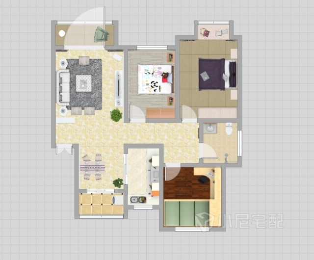 本案設計確定為簡歐風格,符合業主要求,顏色搭配,墻面造型等都比較簡單。家裝家具一體價15萬