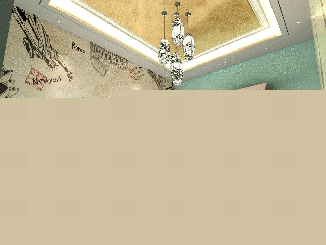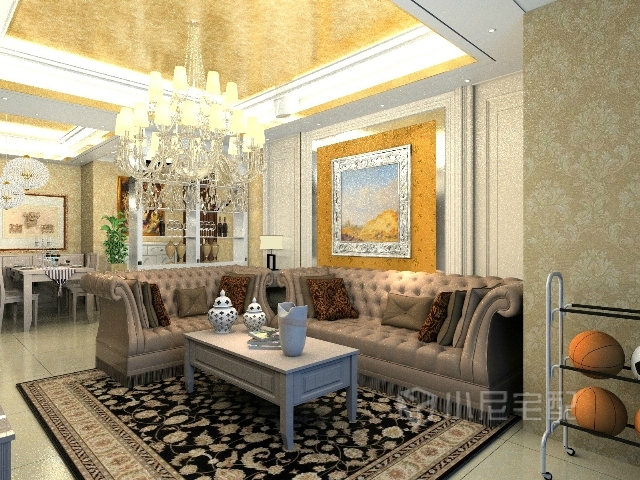 豪華大型吊燈略低的高度,營造出較為突出的裝飾效果。