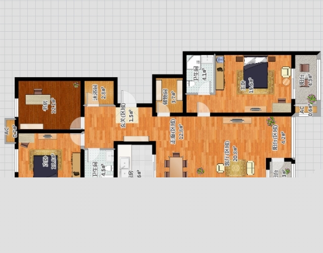 鋪設淺色木地板,選用個深色家具穩定空間。