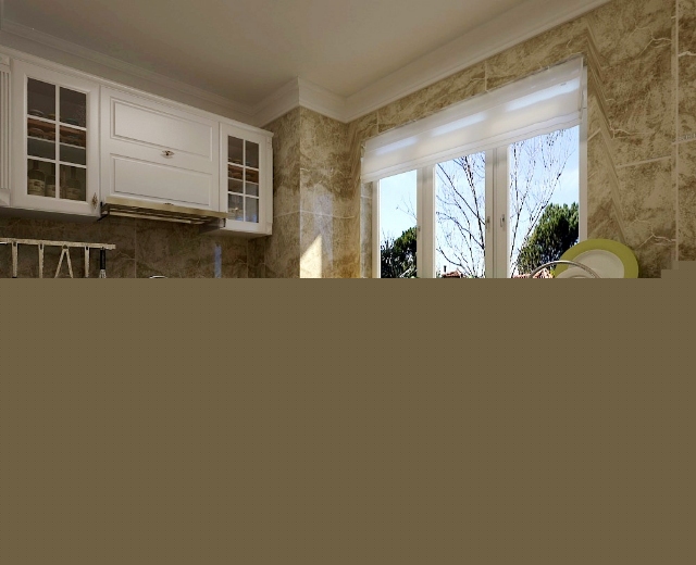吸塑材質(zhì)的櫥柜造型很好的搭配了整個裝修的簡歐風格