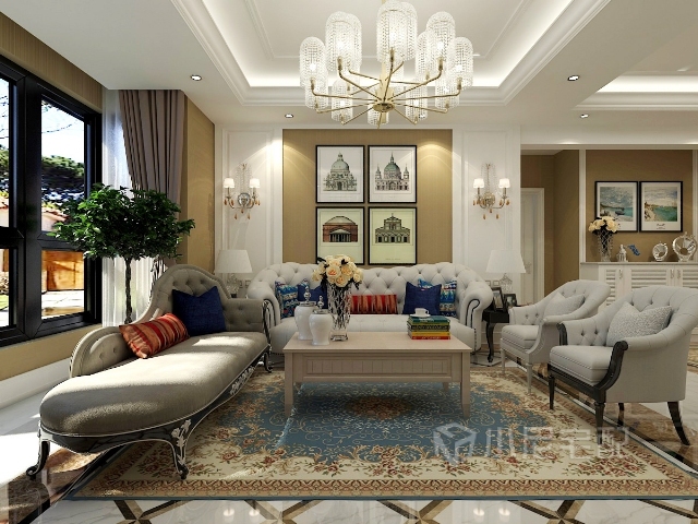 中性色的墻面與混油的白色造型木質(zhì)造型簡歐的沙發(fā)搭配顯得格外穩(wěn)重又特別舒適的感覺