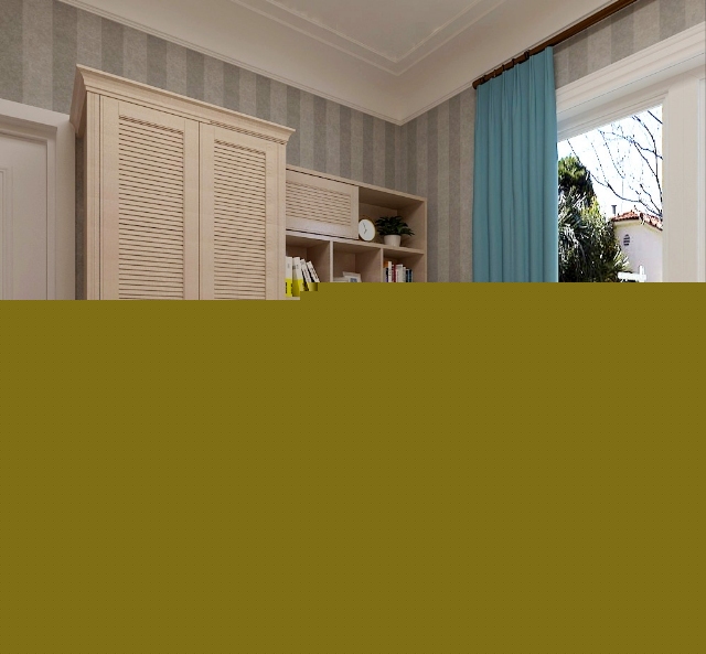 木紋的衣柜書桌跟藍色的窗簾凸顯了整個倫敦小鎮(zhèn)的風格