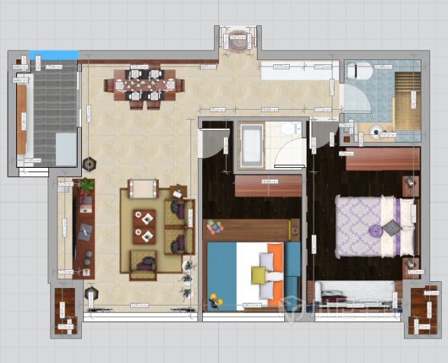 將中國元素結合時尚意象來點綴空間主題,讓大家能欣賞到美好的傳統文化。整體設計上,以大量的木造、深色家俬展現沉穩內斂,局部以鏤空的揭開意象,以石材天然的紋理釋出東方秀麗味道。家居家裝一體價:14.4萬。