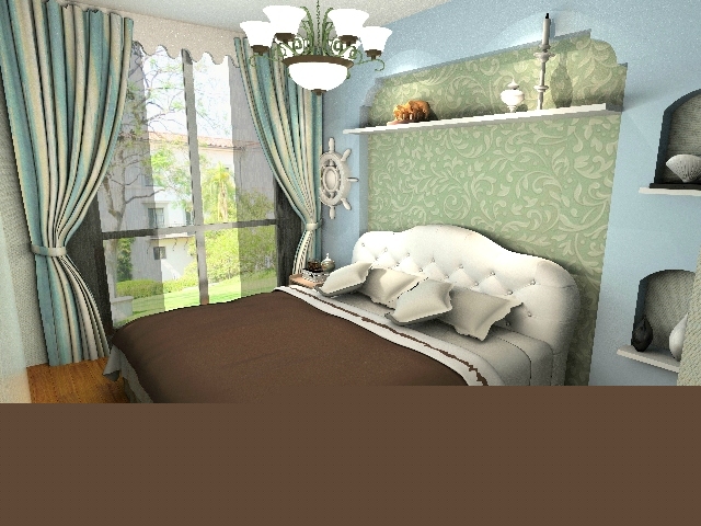 以海洋的蔚藍(lán)色為基色調(diào)的顏色搭配方案,自然光線的巧妙運(yùn)用,富有流線及夢(mèng)幻色彩的線條等軟裝特點(diǎn)來(lái)表述其浪漫情懷。