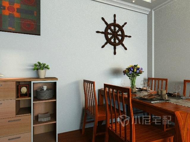 餐廳區域是很大的,所以把餐柜放在餐桌旁。