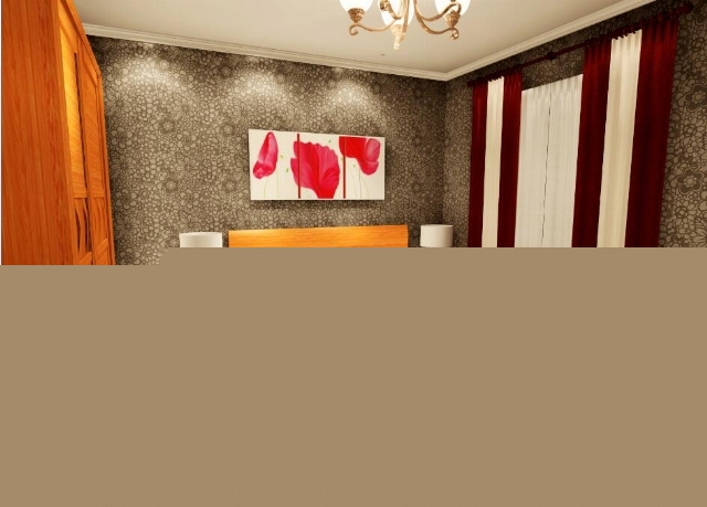 主臥的布置簡潔大方,深色的墻紙更是讓人一眼便,營造溫馨感。