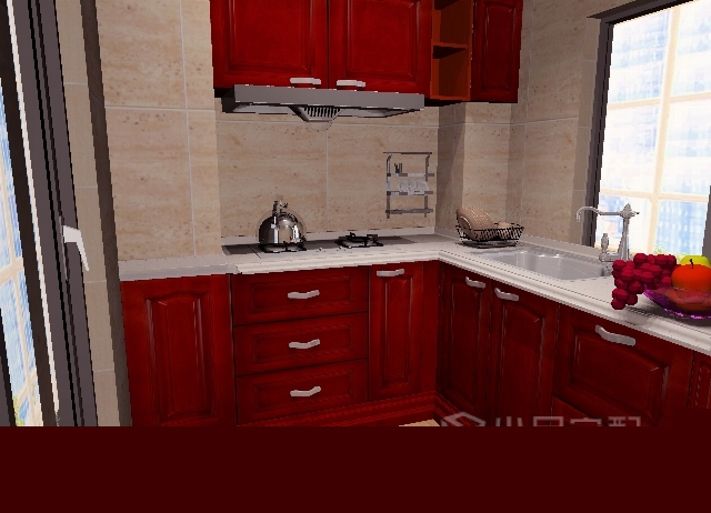 小面積的廚房,L型的櫥柜符合人機工程學的理念。