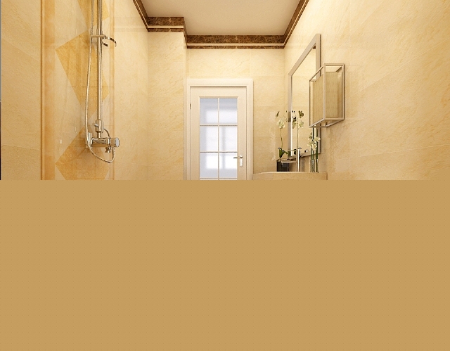 拼花的瓷磚搭配造型的天花,簡單大方。