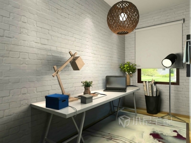 仿磚壁紙,拉絲吊燈,一個(gè)專業(yè)的工作空間誕生。