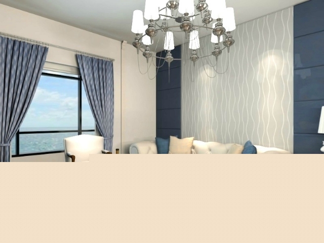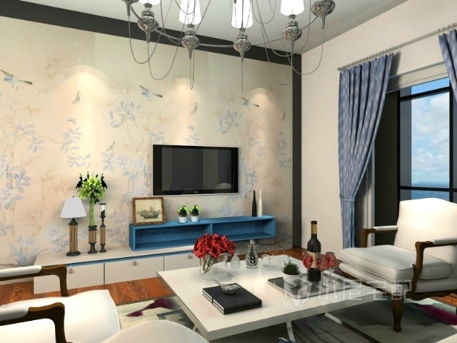 大窗讓客廳格外亮堂,藍(lán)色與白色的搭配令人心曠神怡。